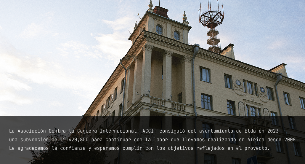 ACCI es una ONG fundada en 2008 en Elda, con el objetivo de dar cobertura legal a un grupo de voluntarios para luchar contra la ceguera evitable.